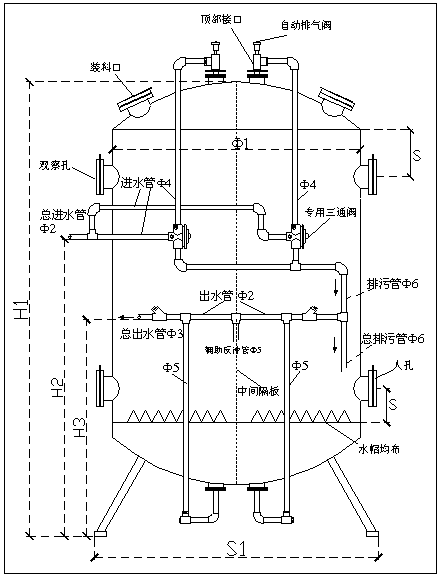 標(biāo)準(zhǔn)系統(tǒng)的優(yōu)異的反沖洗強(qiáng)度、產(chǎn)水量等水流特性使過濾器工作于穩(wěn)定狀態(tài)下;較大的進(jìn)出水及排水口可提供大的沖洗強(qiáng)度,以較少的水耗得到較好的沖洗效果;系統(tǒng)設(shè)計(jì)時(shí)配用了專用的排氣閥,可將運(yùn)行時(shí)帶入罐內(nèi)的氣體及時(shí)排出,減少氣體對設(shè)備運(yùn)行及反沖洗的影響,提高設(shè)備運(yùn)行的穩(wěn)定性;系統(tǒng)采用手動(dòng)控制或壓差表自動(dòng)控制,可以實(shí)現(xiàn)無人值守;標(biāo)準(zhǔn)系統(tǒng)均為雙罐并聯(lián)設(shè)計(jì),可以隨時(shí)向后級系統(tǒng)連續(xù)供應(yīng)合格水;設(shè)備自動(dòng)采用無氧水進(jìn)行反沖洗,進(jìn)一步提高反沖洗效果,降低水耗及除氧劑消耗;系統(tǒng)采用模塊化設(shè)計(jì),可以根據(jù)需要增加罐體以達(dá)到更高的產(chǎn)水量。